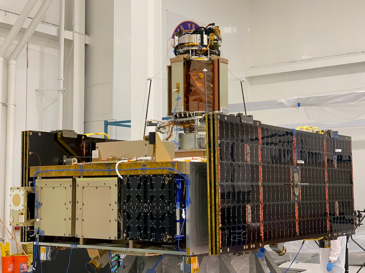 Momentus's Vigoride spacecraft with the Space Solar Power Demonstrator integrated onto the top. The folded-up solar panels on the side of the spacecraft will help power the SSPD experiments. (Released December 9, 2022)